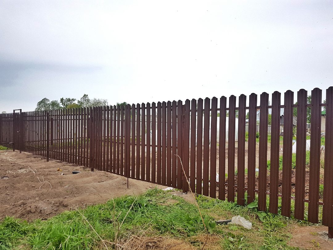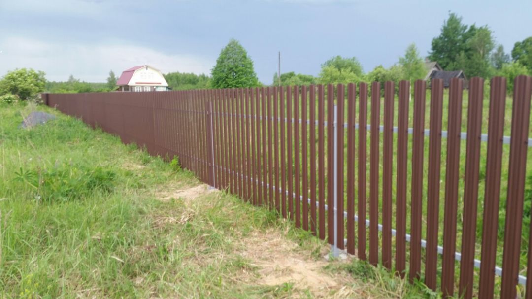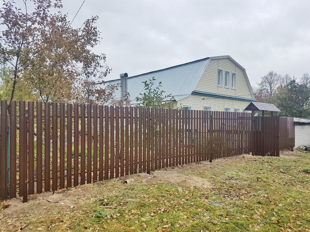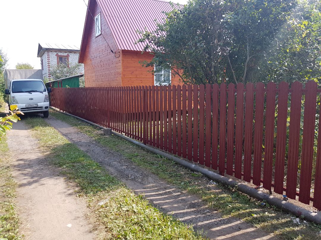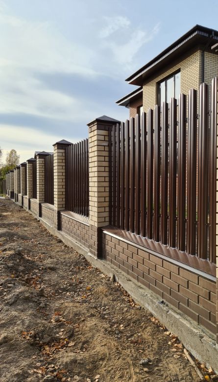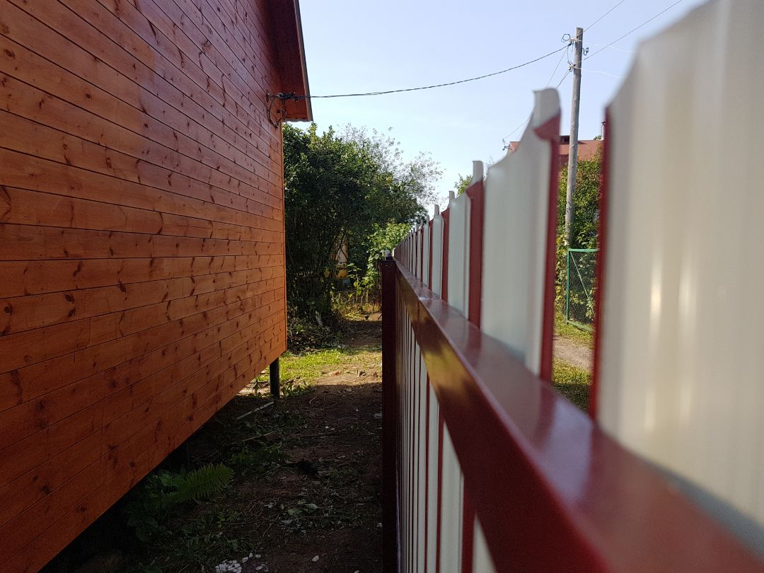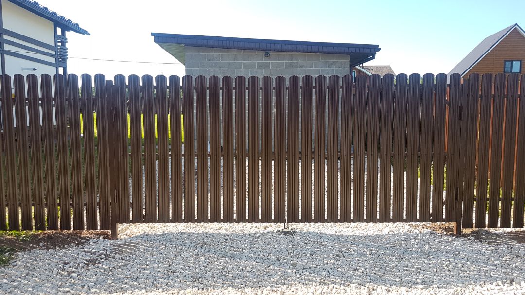 Одно из заметных преимуществ евроштакетника — возможность крепить планки нестандартным образом. Это позволяет собрать секцию с уникальным рисунком и выделить участок на фоне однотипных заборов поблизости.