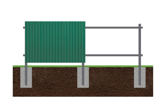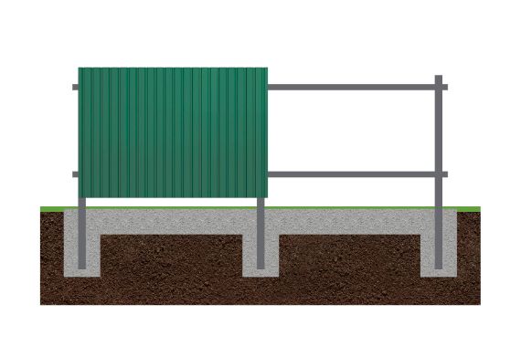 Самый надежный вид монтажа забора, создает монолитность всей конструкции.