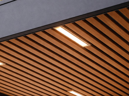 Отдельное внимание в навесах Hi-Tech уделяется потолочной части. Именно потолок формирует визуальное восприятие конструкции и придает ей завершенный, премиальный вид.