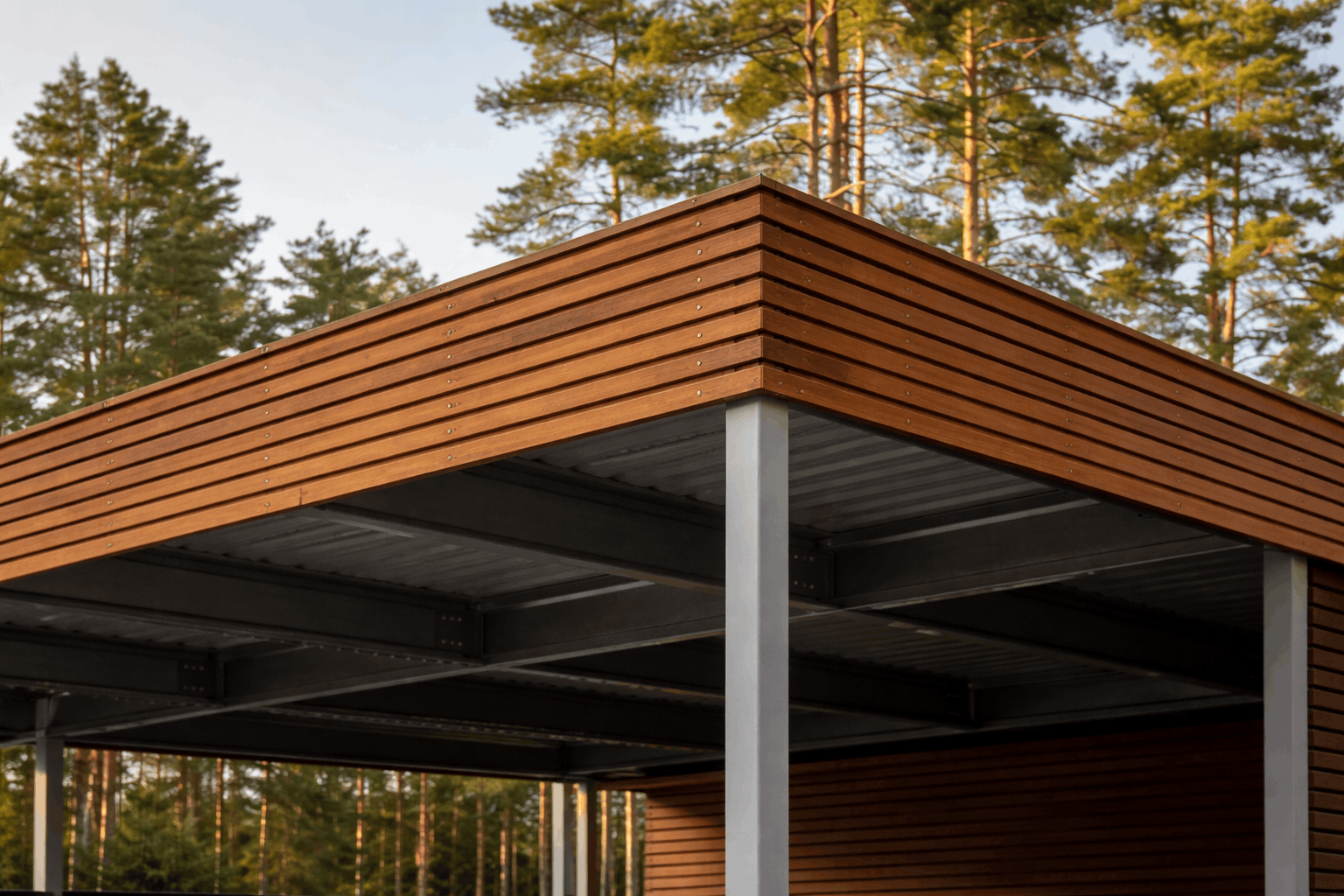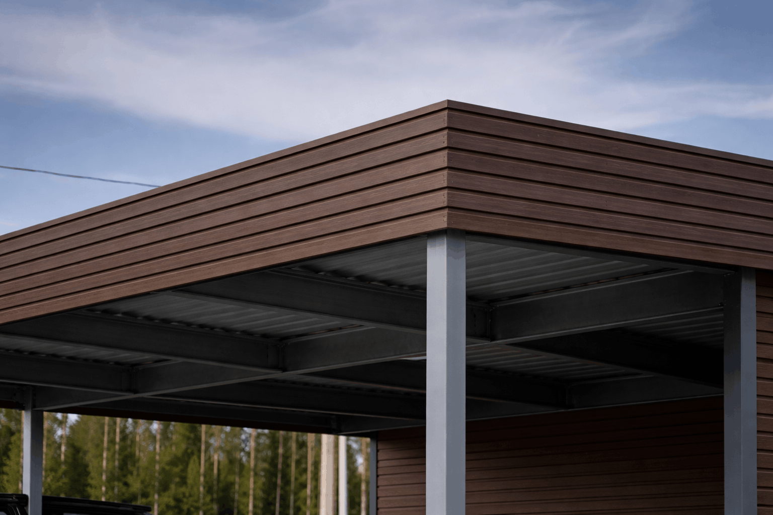 Фризы — это декоративные панели, которые закрывают стропильную систему и придают навесу законченный, аккуратный внешний вид. Они скрывают технические элементы конструкции и делают навес визуально более «дорогим» и современным.