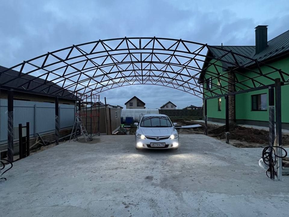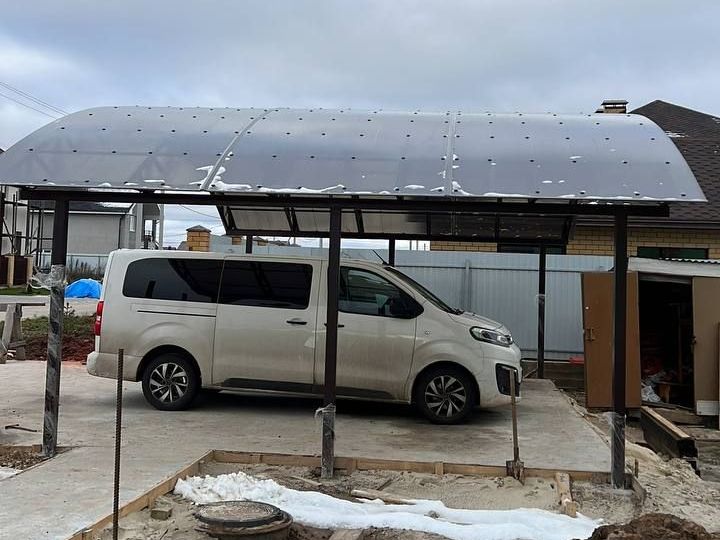 Арочный навес из сотового поликарбоната 8×7 в Бурцево — кейс строительства под ключ