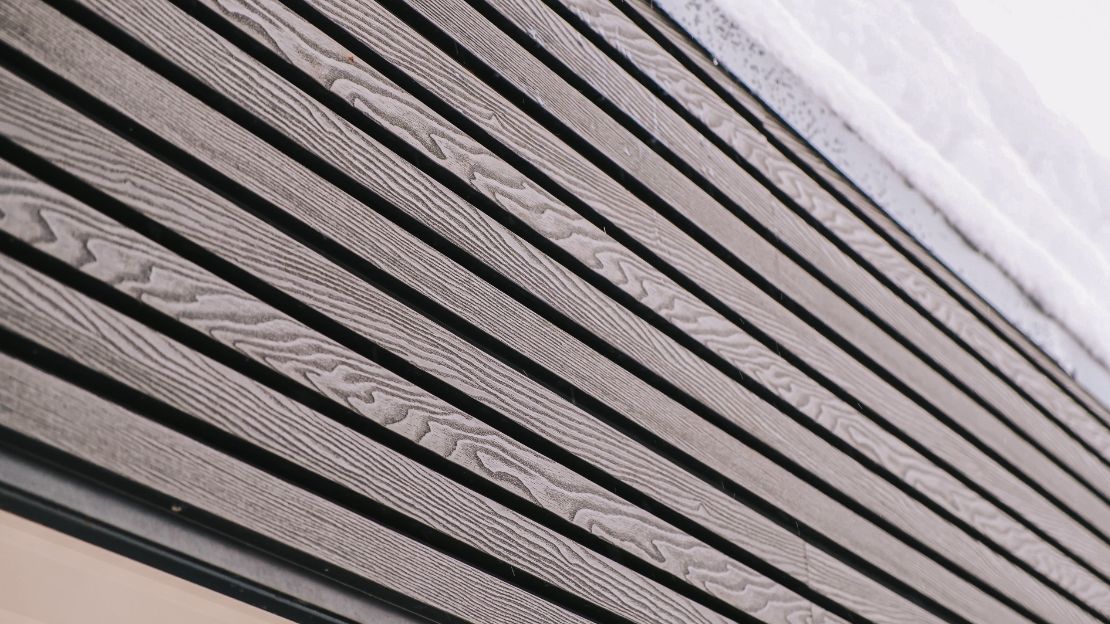 Блавная визуальная особенность — фризы из ДПК панелей (рейка, цвет графит).