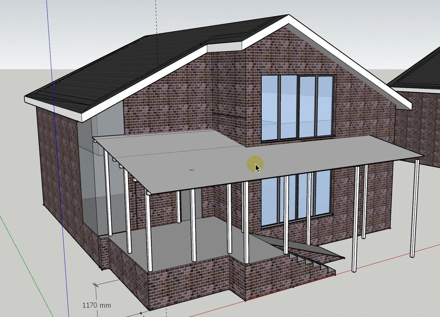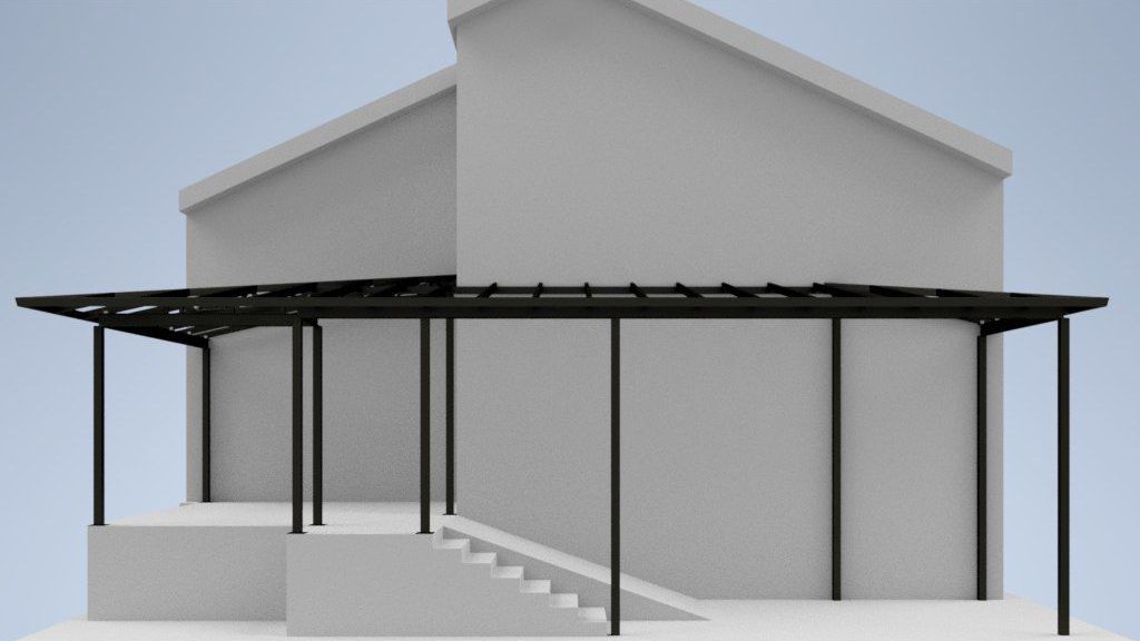 Перед нами стояла не просто задача сделать навес — нужно было создать единое архитектурное решение, которое: