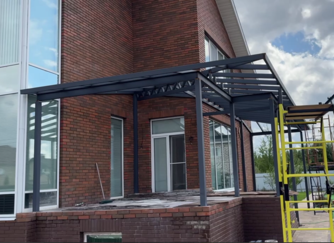 Строительство навеса для террасы из монолитного поликарбоната — кейс проектирования и строительства